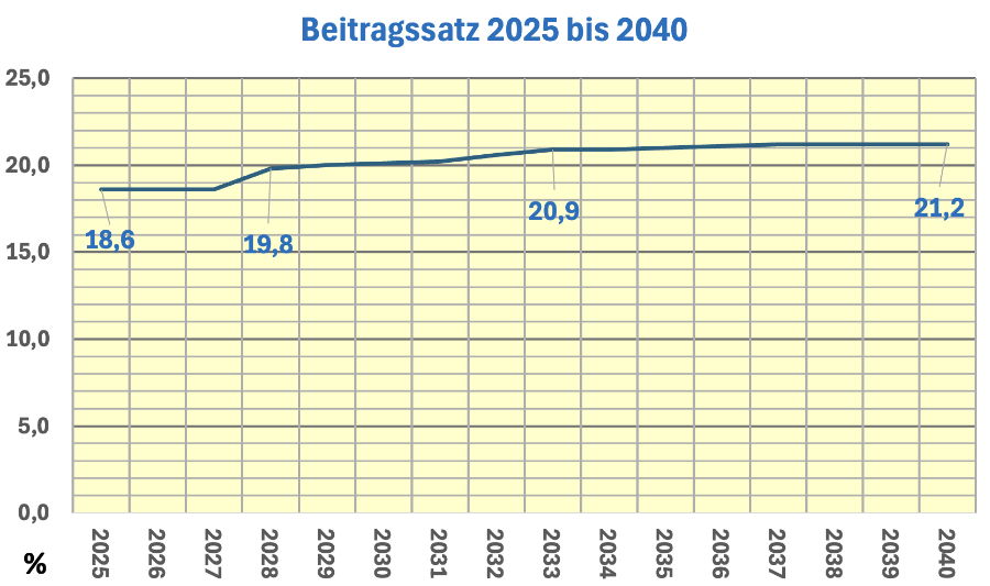 Auch der erwartete Beitragssatzanstieg ist überaus moderat. Er beträgt in den kommenden 15 Jahren 2,6 %. Das ist im Durchschnitt eine Zunahme von 0,2 % pro Jahr. Bei paritätischer Finanzierung werden die Löhne (Korrektur, es muss natürlich heißen: „Lohnabzüge“) dann um lediglich 0,1% erhöht. Zur Vermeidung der Absenkung des Rentenniveaus bis 2040 würden 0,4 %, also 0,2 % vom Lohn, ausreichen. In Worten: mit 0,2% mehr Beitrag ließe sich der Verlust von 4 % bei der Rente zu vermeiden. Warum fragt niemand diejenigen, die es angeht, ob sie dazu bereit sind? Es würde auf breite Zustimmung stoßen, wie einschlägige Umfragen seit Jahren zeigten.